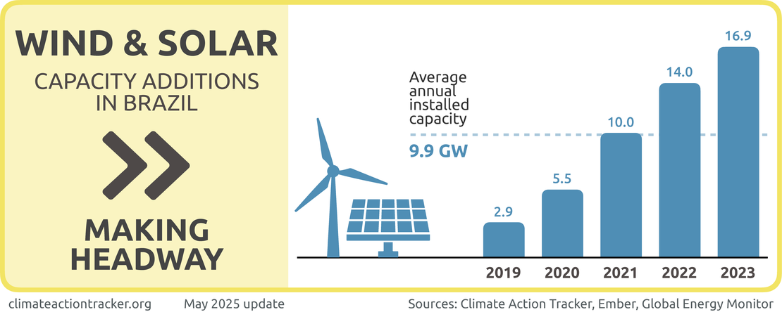 The “Insufficient” rating indicates that Brazil’s climate policies and action in 2030 need substantial improvements to be consistent with limiting warming to 1.5°C. If all countries were to follow Brazil’s approach, warming would reach over 2°C and up to 3°C.