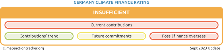 Germany’s international climate finance is rated “Insufficient” (see below) and is not enough to improve Germany’s fair share rating.