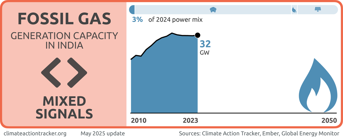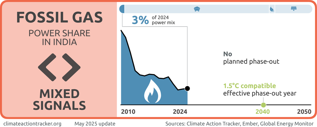 We evaluate India’s progress in phasing out fossil gas in the power sector as “Mixed signals.”