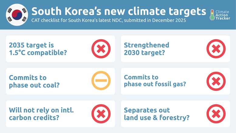 South Korea submitted its 2035 NDC to the UNFCCC on December 26, 2025. We will update this target analysis once further information on the planned use of Article 6 and international carbon credits becomes available.