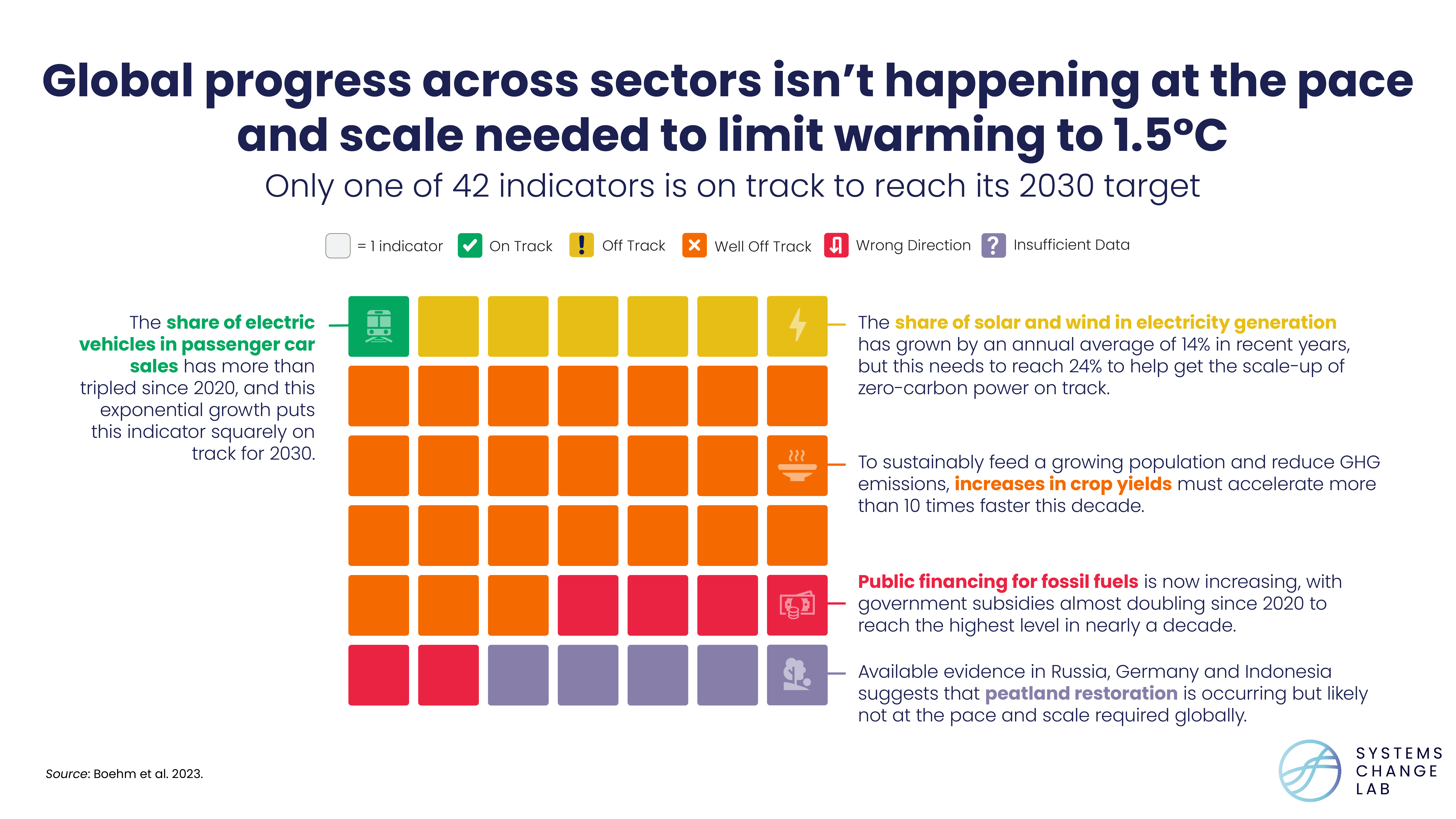 Still, an enormous acceleration in effort will be required across all sectors to get on track for 2030. For example, the world needs to: