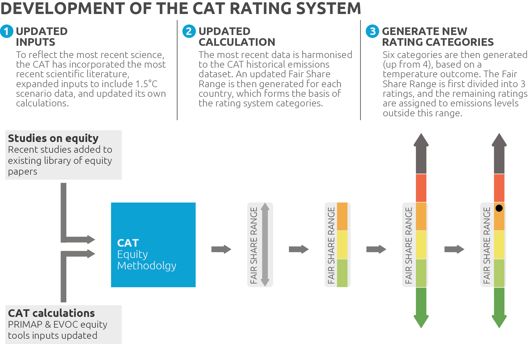 The Climate Action Tracker (CAT) has updated its effort sharing methodology to reflect the increase of climate mitigation required to meet the Paris Agreement 1.5°C long-term temperature limit, and the most recent literature published about equitable emissions reductions and the most recent emissions trends.