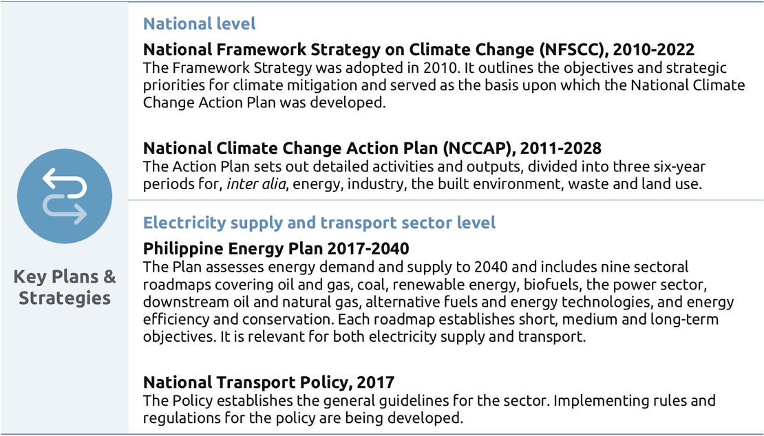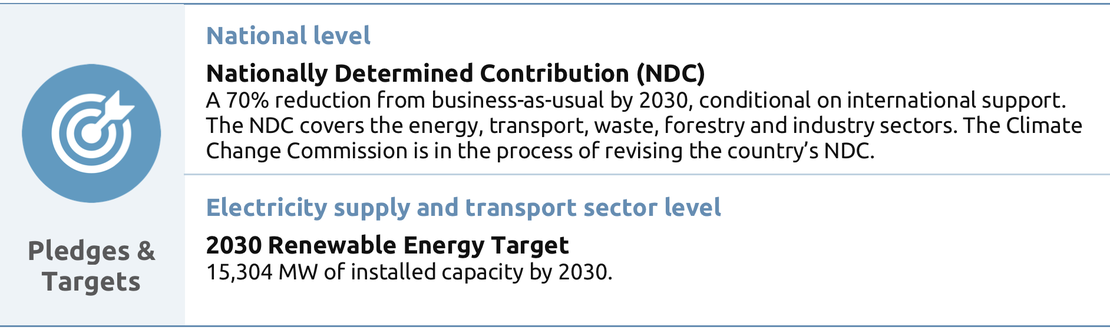 These tables from the report give an overview and analysis of the key factors of the Philippines governance to enable effective climate action. We look at the country's key institutions, strategies, targets and legislation, as well at a sectoral level for the electricity supply and transport sectors.