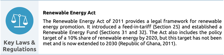Ghana has no long-term decarbonisation target nor strategy. Its low-carbon development strategy focuses on the period up to 2030. Ghana’s Renewable Energy Act provides the legislative framework for renewable energy development, but the country has no other climate-related legislation in place, and there is no evidence to suggest the government is committed to developing such legislation.