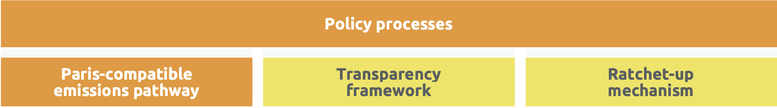 - Establish a formal ratchet up mechanism to scale up climate action in line with the Paris Agreement’s five-year cycle.