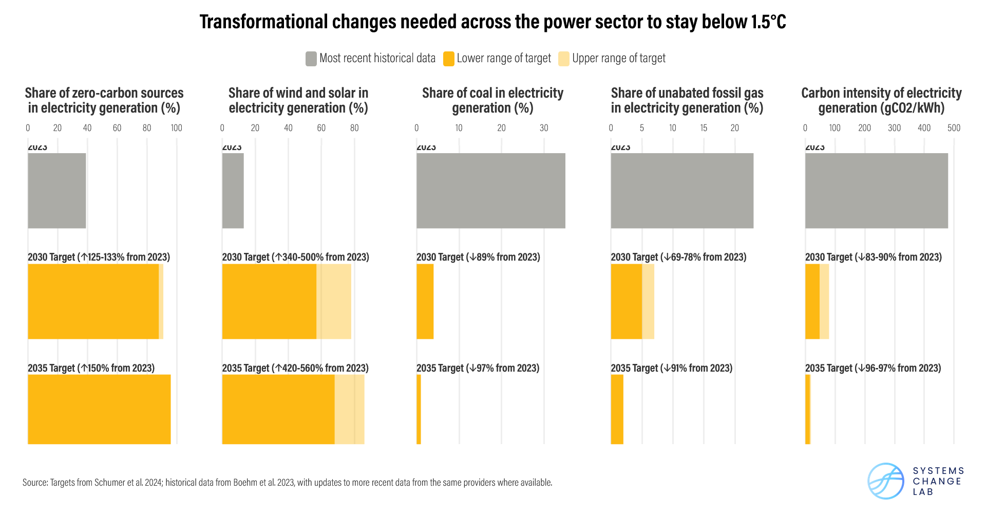 To help inform this next round of NDCs, new research from Systems Change Lab translates the Paris Agreement’s 1.5 degrees C temperature goal into global, sector-specific targets for 2035, complementing previously published targets for 2030 and 2050.