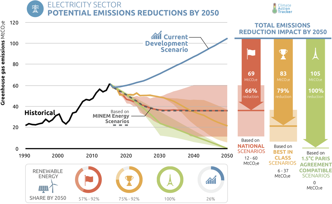 Our findings highlight that scaling up climate action in the Argentinian electricity supply sector through large-scale expansion of renewable energy could reduce GHG emissions from electricity generation by up to 80% below 2014 emissions levels by 2040 and completely decarbonise the sector by 2050. These ambitious scenarios developed by national institutions and stakeholders would be in line with a 1.5°C Paris Agreement compatible pathway to 2040.