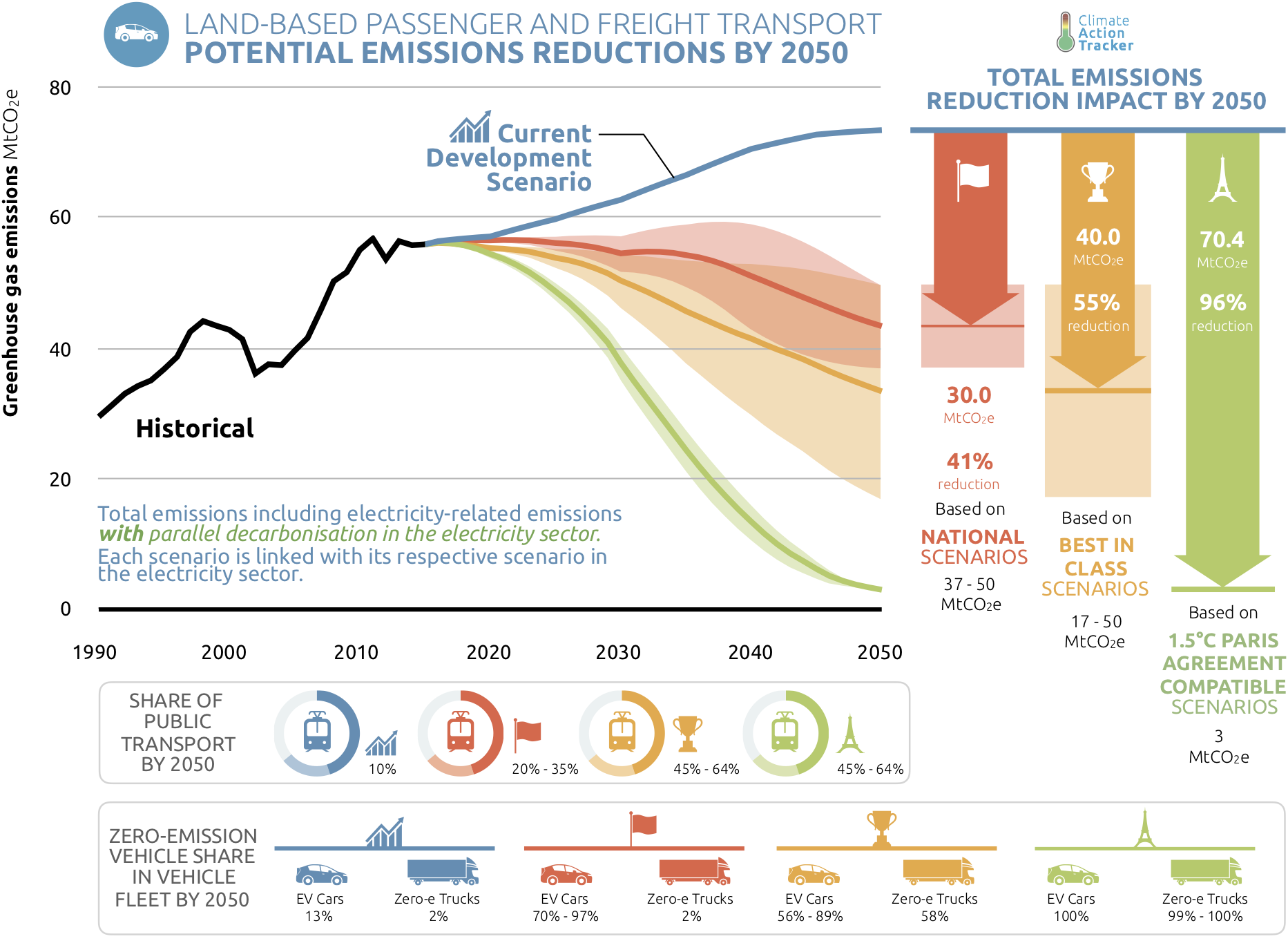 The recent upward trends of GHG emissions from the transport sector in Argentina highlights the need to accelerate action to fully decarbonise this sector by mid-century to be compatible with the Paris Agreement. Our analysis on accelerating climate action in the transport sector focuses on land-based passenger and freight transport, with a particular emphasis on the impact of transitioning towards zero-emission cars, buses and trucks.