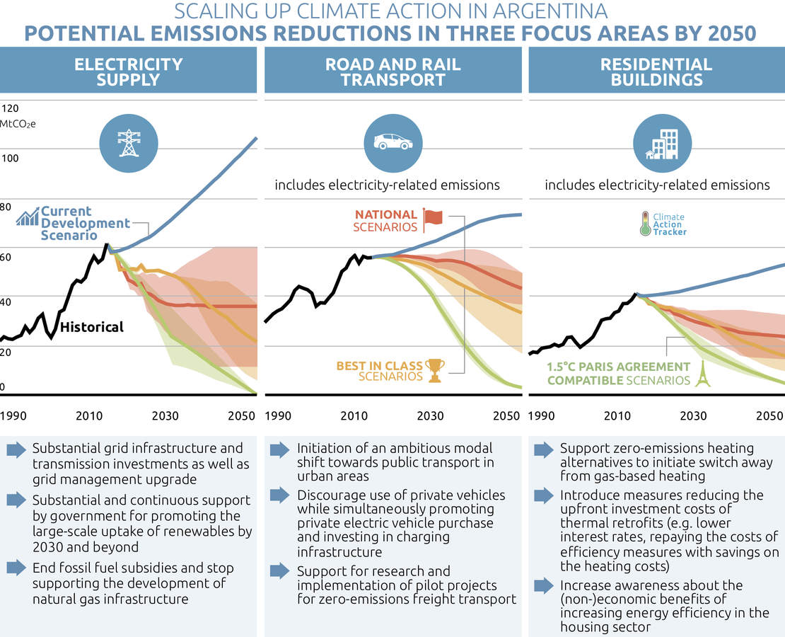 Argentina will still need to take additional action in other sectors such as agriculture and land-use sectors in order to decrease economy-wide emissions by mid-century in line with the Paris Agreement’s temperature limit.