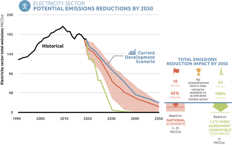 - Accelerated climate action in line with the Paris Agreement-compatible scenarios across all sectors allows Australia to achieve emission reductions of about 50% below 2005 emission levels by 2030, and 90% reductions by 2050, excluding the uncertain and volatile Land use, land-use change and forestry (LULUCF).