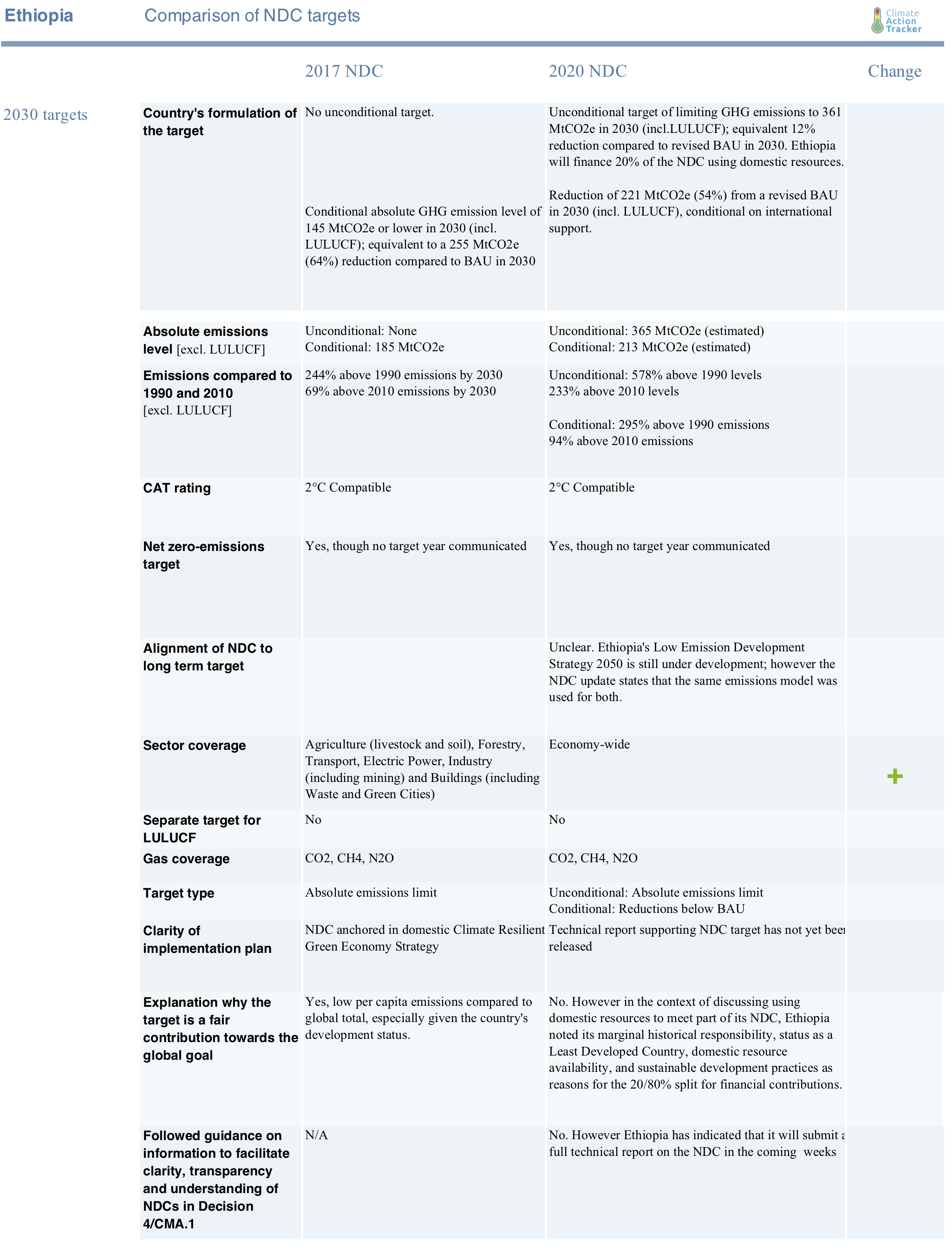 In December 2020, Ethiopia submitted a summary of its updated NDC and indicated that a final technical report will be submitted soon.