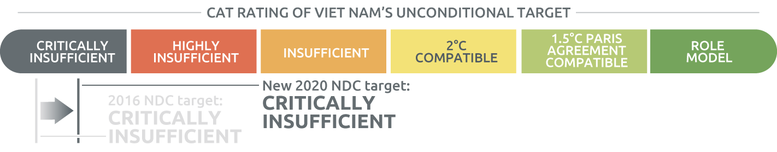 Viet Nam submitted its updated NDC in September 2020. While numerically stronger, it can still be easily met with current policies and will not drive further climate action. We therefore do not consider Viet Nam's target to be stronger than the previous one.1 The CAT rating remains unchanged as ‘Critically Insufficient’. The transparency and sectoral coverage of the NDC has improved.
