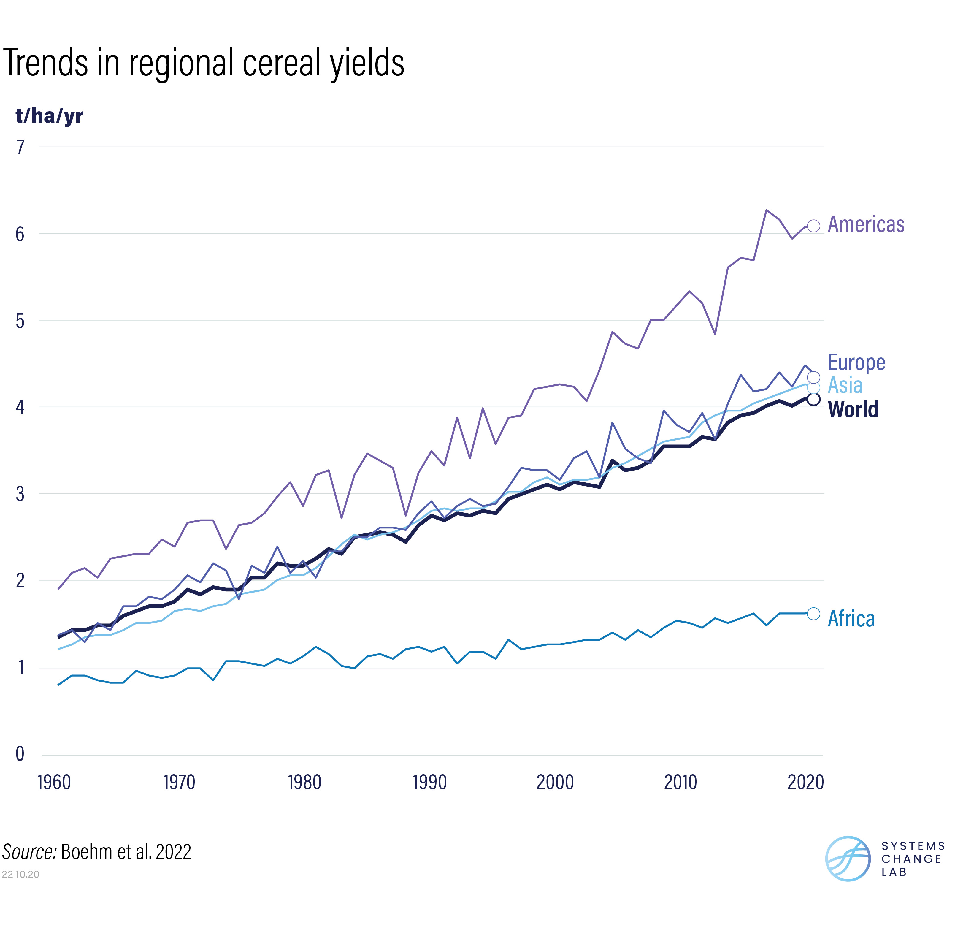 Growth in crop yields must accelerate six-fold over this decade, while annual advances in ruminant meat productivity (the amount of meat from animals like cows, goats and sheep produced per hectare) must occur 1.3 times faster to avoid emitting GHGs from deforestation and without compromising food security. Particular attention is warranted in Africa, where yields have remained stagnant for decades and climate impacts like crop-withering droughts will likely intensify. Increasing resilience to these risks will prove critical in the coming decades, as will the development and deployment of new technologies that boost yields and lower emissions.
