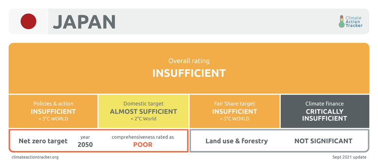 However, as noted in our recent brief, a 1.5°C-compatible benchmark for Japan would be to reduce its emissions by more than 60% below 2013 levels by 2030. The new target falls short of this ambitious benchmark, based on 1.5°C pathways with no or low overshoot, and also does not fully live up to the international expectations that Japan would clearly commit to a 50% reduction target and join the club of global climate leaders.