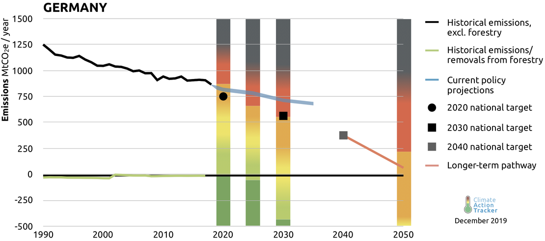 The new draft climate law includes the “commitment to pursue greenhouse gas neutrality by 2050 as a long-term goal”. This was included despite the difficulties the German government had earlier in 2019 to clearly commit to such a goal.