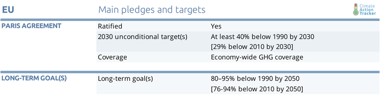The EU is on-track to meeting this NDC and, if it implements current targets in place, may achieve 48% by 2030.