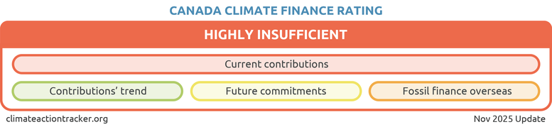 Canada’s international public climate finance contribution is rated 'Highly insufficient'.