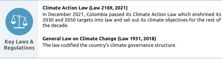 This report is focused on Colombia’s national climate governance. It does not cover governance matters related to fighting deforestation, though this will be a core element of Colombia’s climate action.