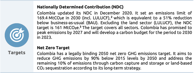 Colombia submitted its first NDC update in 2020, but did not submit a further update in line with the 2021 Glasgow Climate Pact to ‘revisit and strengthen’ NDCs in 2022. It has also not released its first implementation and monitoring plan, assessing progress towards the current target.