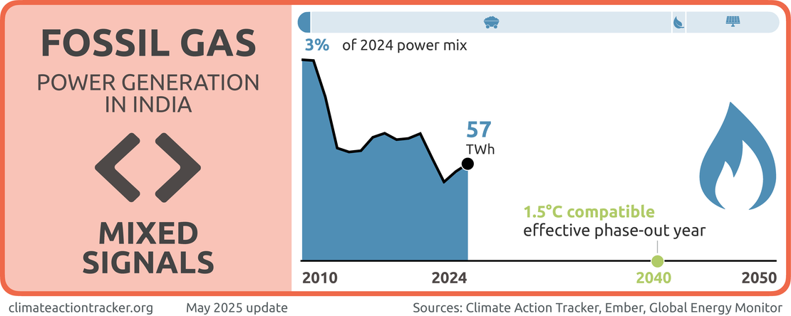 We evaluate India’s progress in phasing out fossil gas in the power sector as “Mixed signals.”