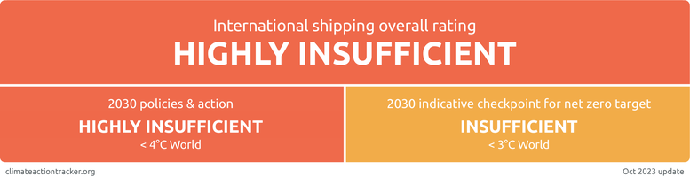 The CAT rates the 2030 'indicative checkpoint' emissions reduction goal of 20% below 2008 levels as “Insufficient”, indicating that the target is consistent with limiting warming to between 2°C and 3°C, if all other sectors were to follow the same approach as international shipping.