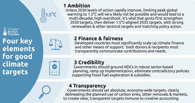 In this briefing, the Climate Action Tracker (CAT) highlights four key elements for what is needed from the next round of NDCs for 2035: they need to be ambitious, fair, credible, transparent, and include aspects of climate finance and a just and fair transition.