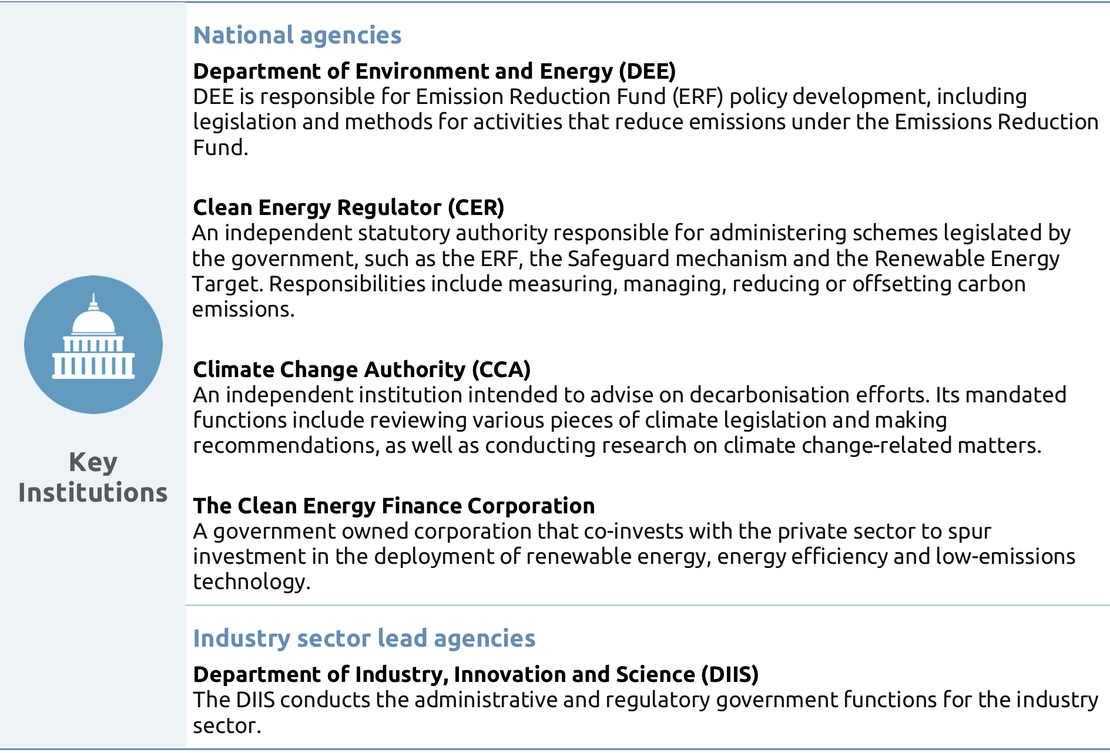 - Establish a climate mitigation team or institution within the Department of Environment and Energy with adequate resources and capabilities for designing and implementing ambitious climate policy and effective climate mitigation outcomes.