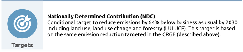 - Establish an explicit legislative mandate for relevant line ministry to reduce greenhouse gas emissions and ensure active engagement of all line ministries in the implementation of the Climate Resilient Green Economy (CRGE) Strategy and its successor.