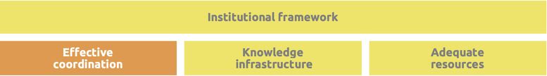 The National Council for Climate Change (NCCC) is an inter-ministerial committee and the key-decision body responsible for coordinating climate policy development and implementation across ministries and agencies. Assessing its effectiveness is difficult as information on the workings of the Council is limited. Transition-related policy development also appears to be taking place in other settings, with the link to the NCCC unclear. Coordination with national and subnational governments is poor as there are no climate specific coordination mechanisms.