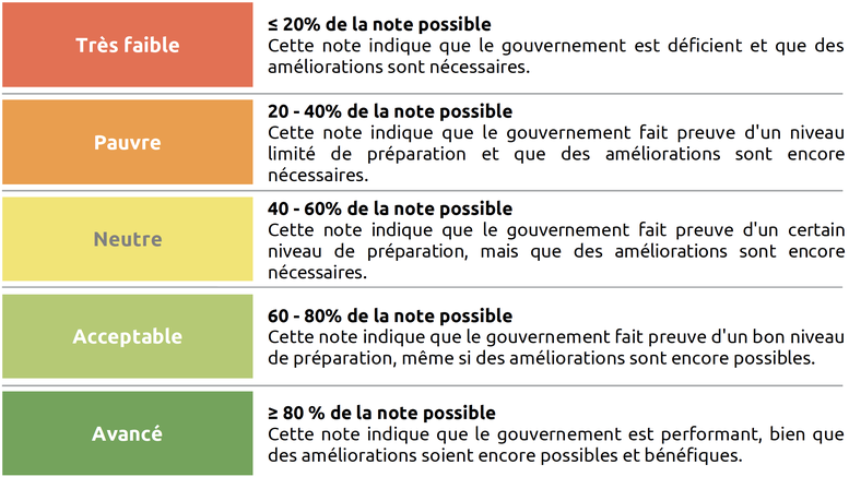 Nous avons mis en place un cadre qui évalue et note un certain nombre d'indicateurs, où nous notons divers aspects de la gouvernance. Cela nous permet d'établir une base commune sur laquelle nous pouvons comparer la gouvernance climatique entre les pays, ainsi que d'identifier les domaines à améliorer et de souligner les évolutions positives. Nous avons appliqué ce cadre uniquement au niveau national .