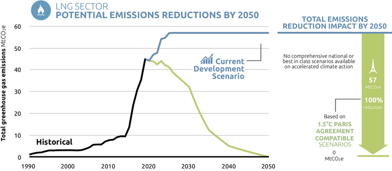 - Natural gas will need to phased out globally for power generation by the 2040s to meet the Paris Agreement goals, however the domestic LNG industry will need to reduce emissions well before that time.