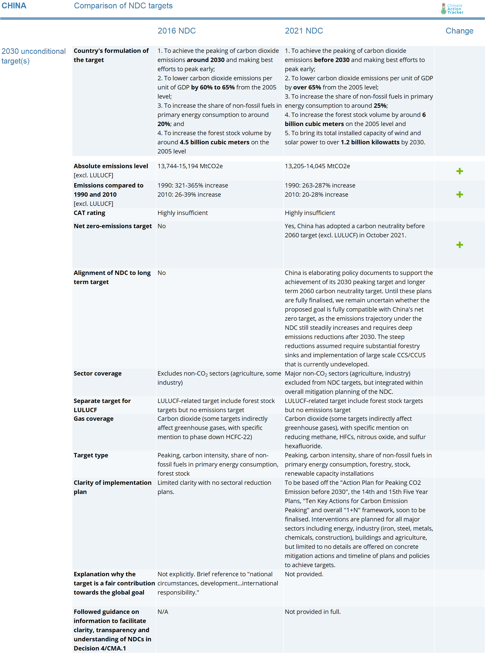 Scroll down for a detailed analysis of China’s NDC update or click the button to view the latest CAT assessment for China.