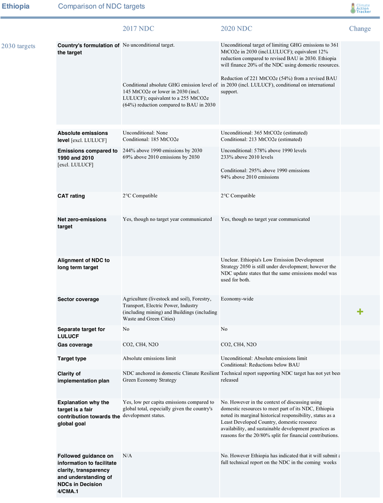 In December 2020, Ethiopia submitted a summary of its updated NDC and indicated that a final technical report will be submitted soon.