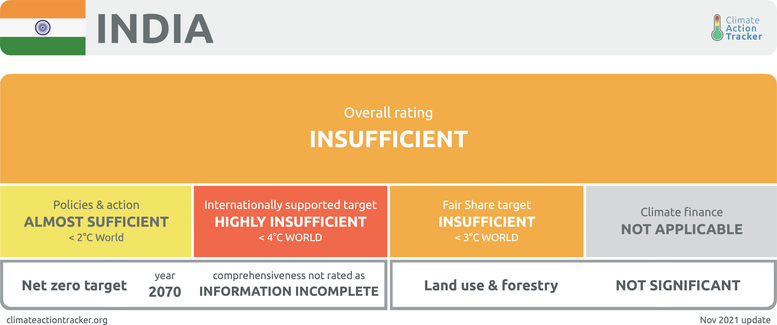 Overall, India’s rating improves from ‘Highly insufficient’ to ‘Insufficient’, with limited additional emissions reductions implied by the non-fossil target.