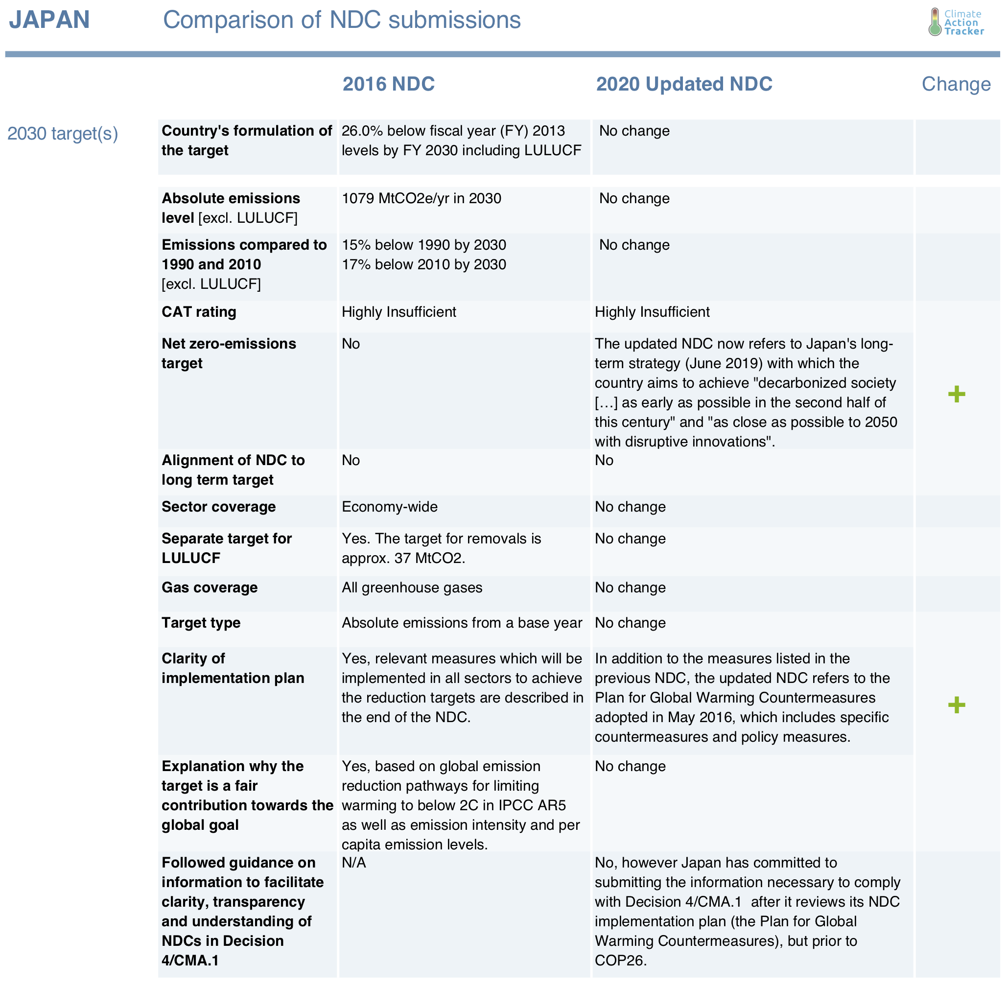 Scroll down for a detailed analysis of Japan’s NDC update or click the button to view the latest CAT assessment for Japan.