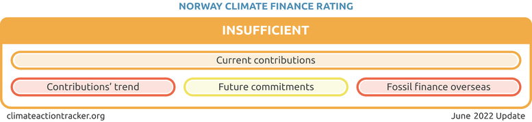 Norway’s international climate finance contributions are rated “Insufficient” (see below) and is not enough to improve its fair share rating.