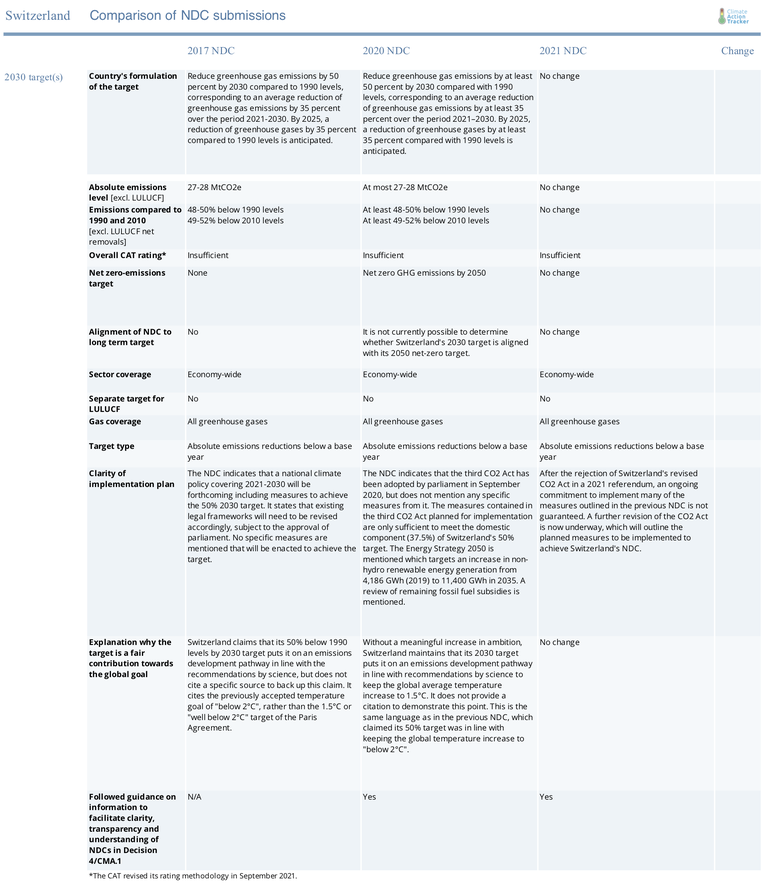 Switzerland’s overall CAT rating remains at ‘Insufficient’.