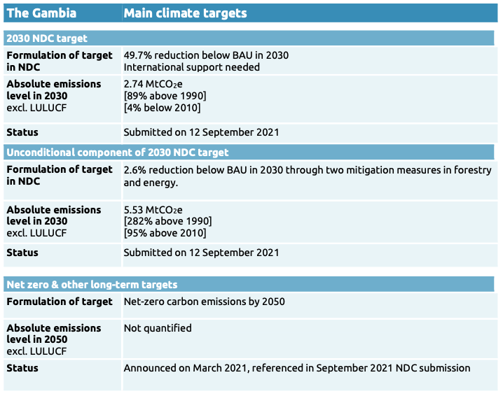 The Gambia has a net zero target. It is currently preparing its long-term strategy.