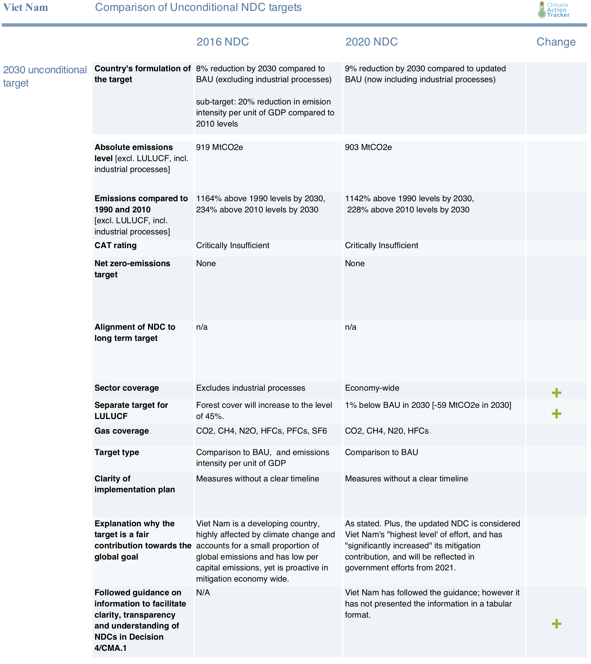 While Viet Nam has made some improvements to the structure of its NDC, it did reduce its coverage of gases. The updated NDC does not include full greenhouse gas coverage, as it does not include PFCs and SF6. These were stated to be included in the old NDC, although they were not mentioned in the technical report to the first NDC.