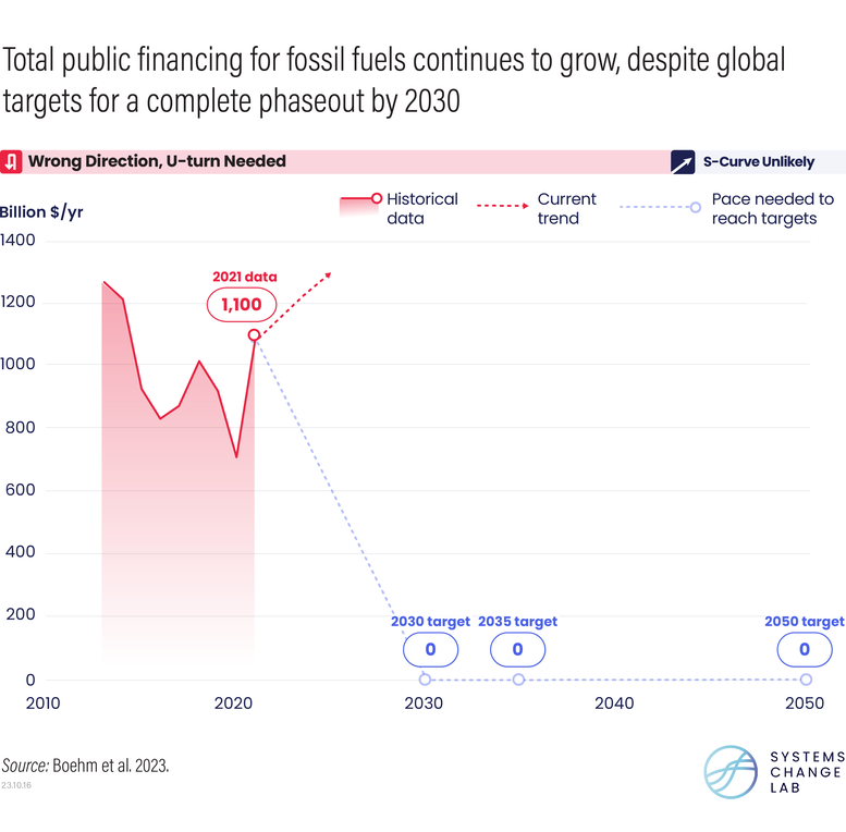 Climate finance, especially in developing countries, pales in comparison to estimated needs, while public financing for fossil fuels is increasing.