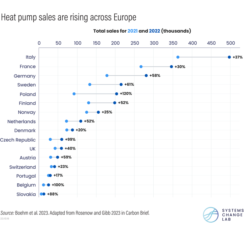 Still, a recent uptick in building regulations primarily within Europe suggests that some progress is underway. Grappling with an energy crisis following Russia’s invasion of Ukraine, the European Union, for example, proposed legislation that would ban the use of fossil fuels for heating in new and renovated buildings, as well as require a complete phaseout of fossil fuels for heating across all buildings by 2035. Similarly, sales of heat pumps — a technology that helps decarbonize heating systems — continue to increase, rising by 120% in Poland, 38% in Europe and 11% globally in 2022. Such advances now need to spread around the world.