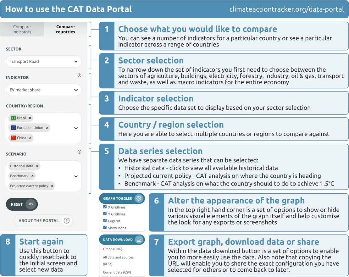 In addition to the many outputs the CAT produces, the CAT aims to arm these types of stakeholders with the data and knowledge they require to hold political leaders to account and to raise the profile of climate change as an issue with their networks. Tackling the climate crisis requires a concerted effort from a wide range of actors; fostering an enhanced understanding of the many facets of this challenge will sharpen the impact of these actors, and the data portal aims to do just that.