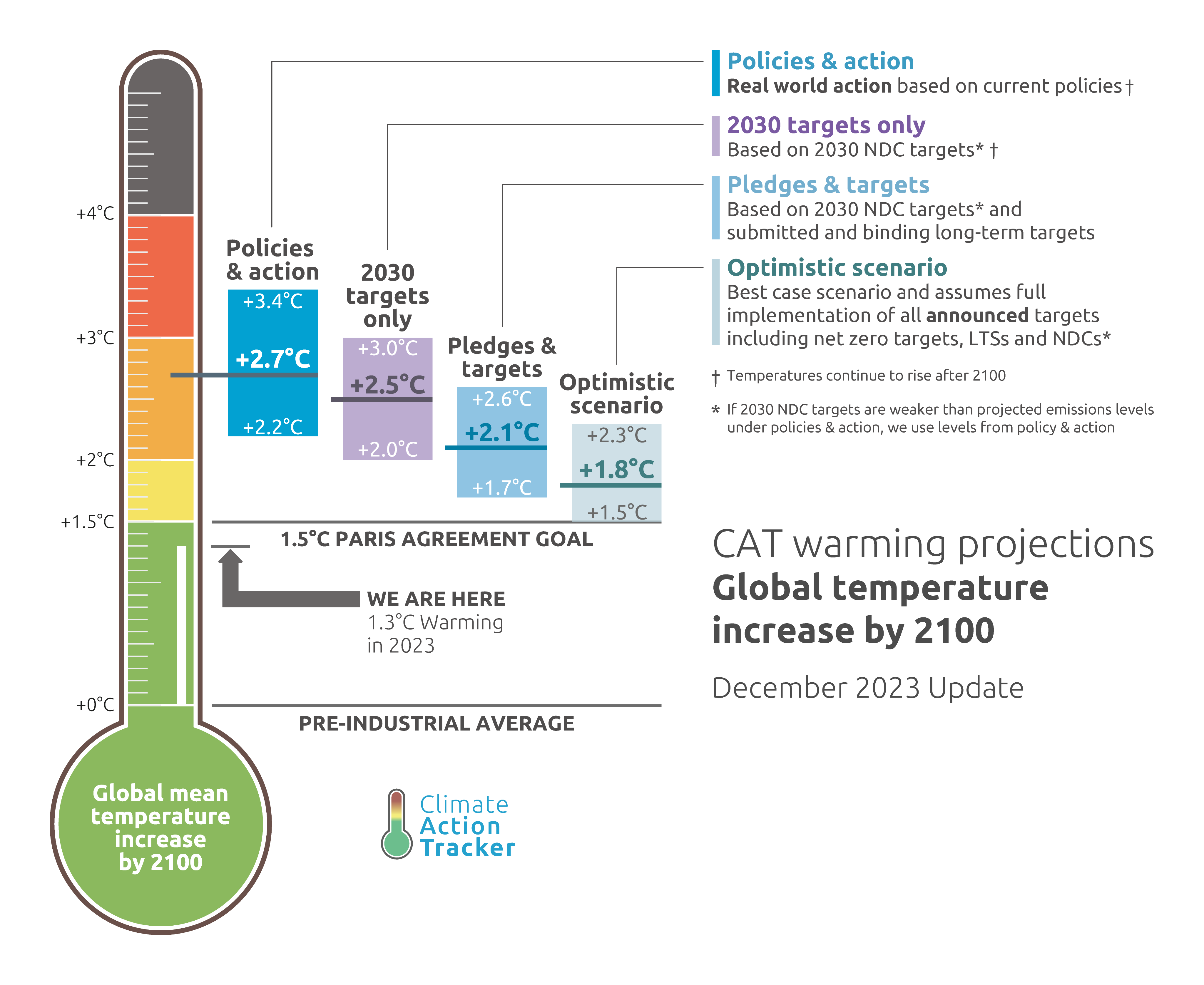 Despite their promises, governments have not taken enough action to drive down warming projections, with some instead turning to false solutions such as CCS to continue the world's reliance on fossil fuels, the Climate Action Tracker said today as it released its annual warming update at COP28.