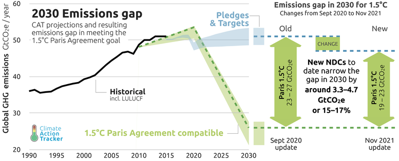 CAT also found the announcements to reduce methane and deforestation made in Glasgow narrow the emissions gap only slightly, if at all.